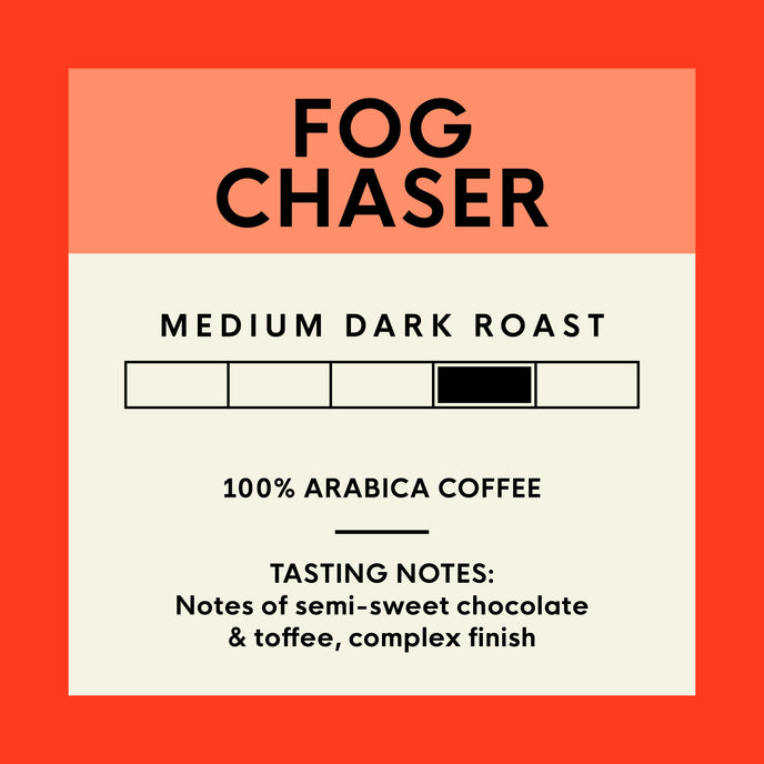 Chase the haze from your mornings one sip at a time with our medium-dark roast Fog Chaser. This coffee’s complex finish will help clarify your day with its notes of semi-sweet chocolate & toffee.